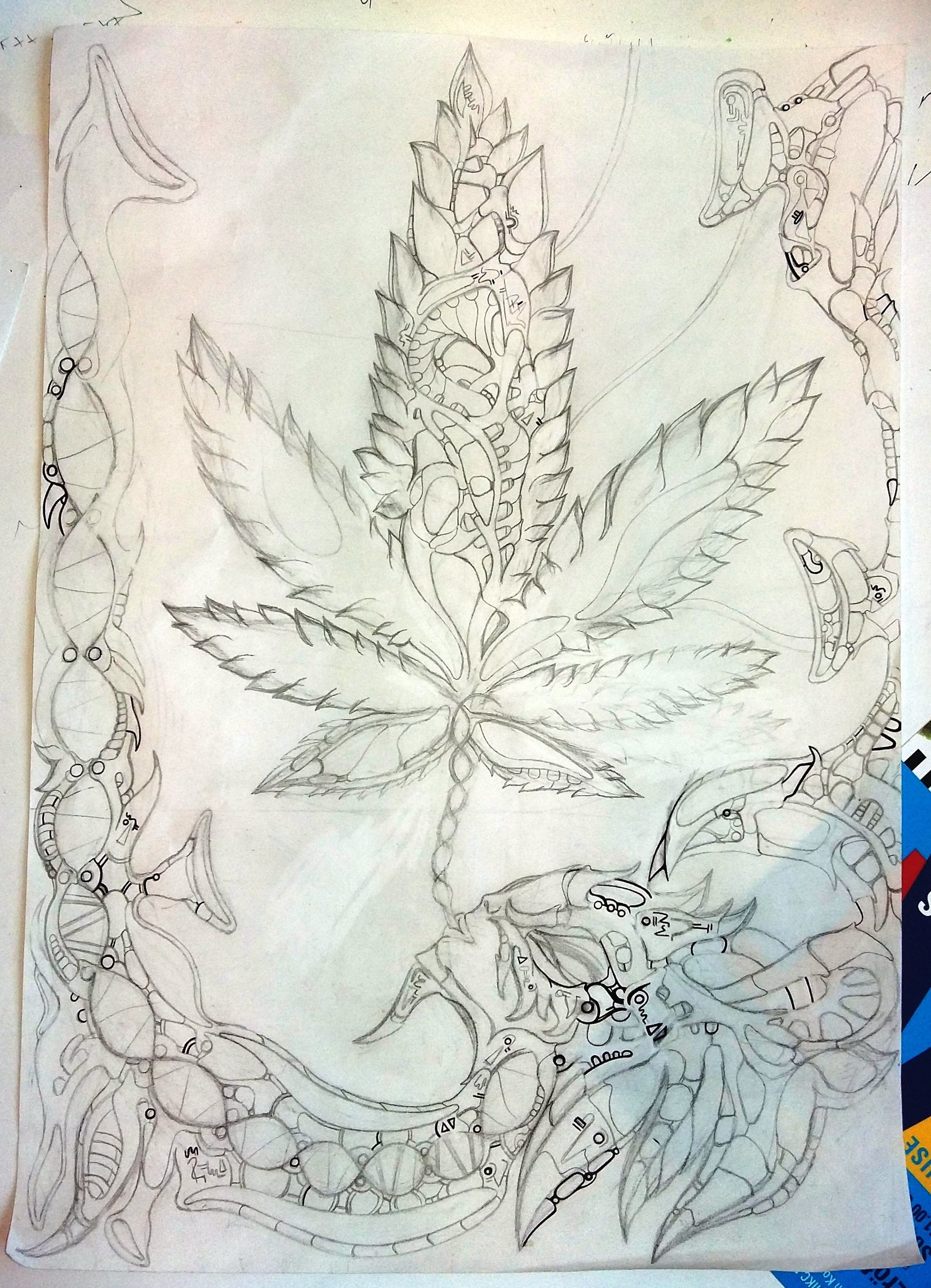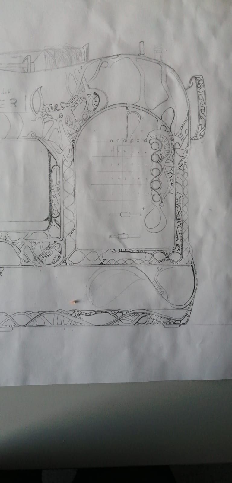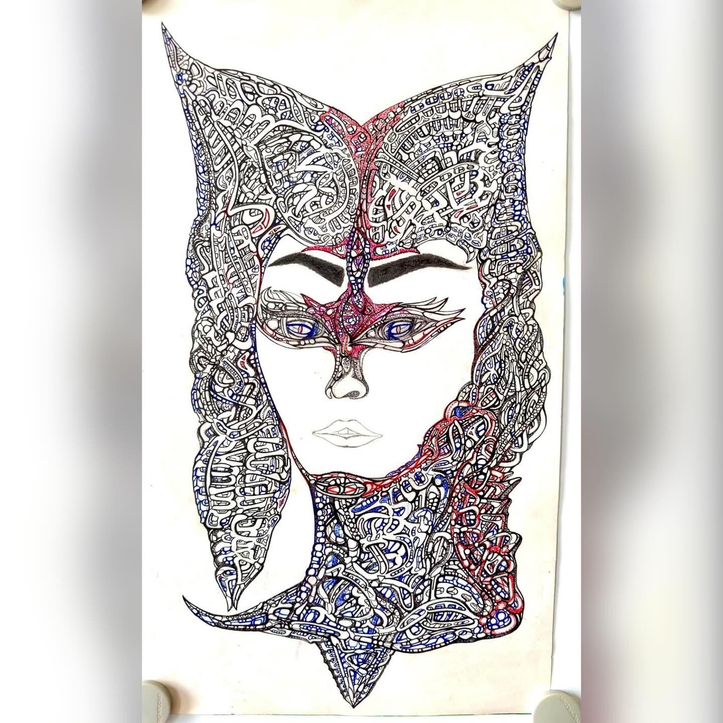 Dieses Bild ist ein spezieller Auftrag gewesen, es ging darum, die Real existierenden Beine samt den Schuhen des Models in meinem Stil wiederzugeben. Das ist für die Auftraggeberin am wichtigsten gewesen. Was meine Muster den Stil, alles, was man sieht, betrifft, so kann ich diesbezüglich das eine sagen, das es intuitiv kommt. Die verschiedenartigen Muster, das Sylische, kommt einfach. Es ergibt sich im Laufe der Arbeit. Wobei mir persönlich bei dem Projekt wichtig war, das man einen Zusammenhang erkennt.