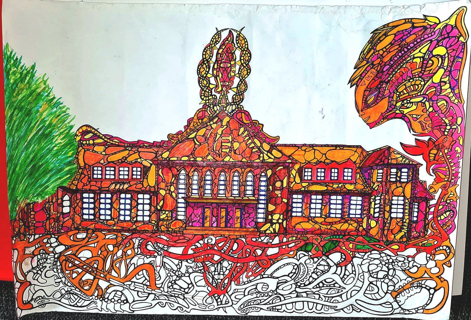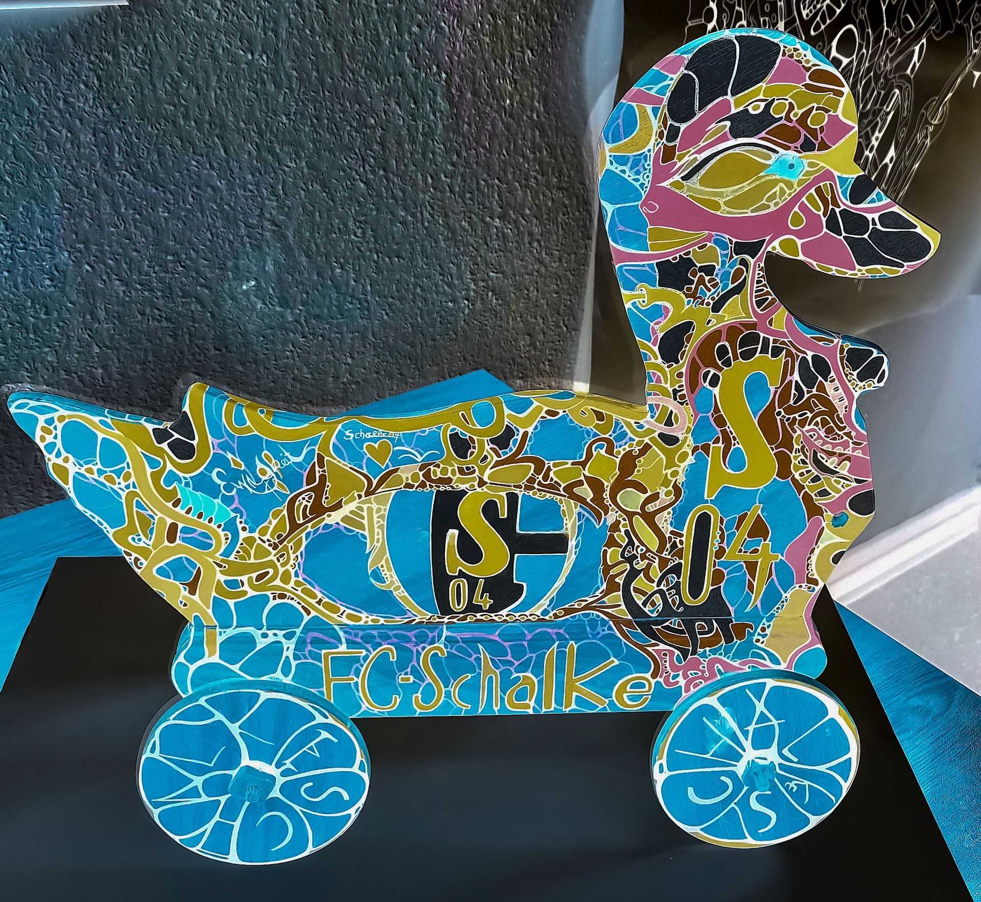 Etwas Stimmiges und Harmonisches also, ähnlich dem Neuen wird konkretes vorgestellt und zeigt dem Betrachter profundes. Es war wichtig, Kunstwerke - die in schwarz-weiß gezeichnet waren. auf die Figur aufzukleben, um das Besondere und Einzigartige zu zeigen.