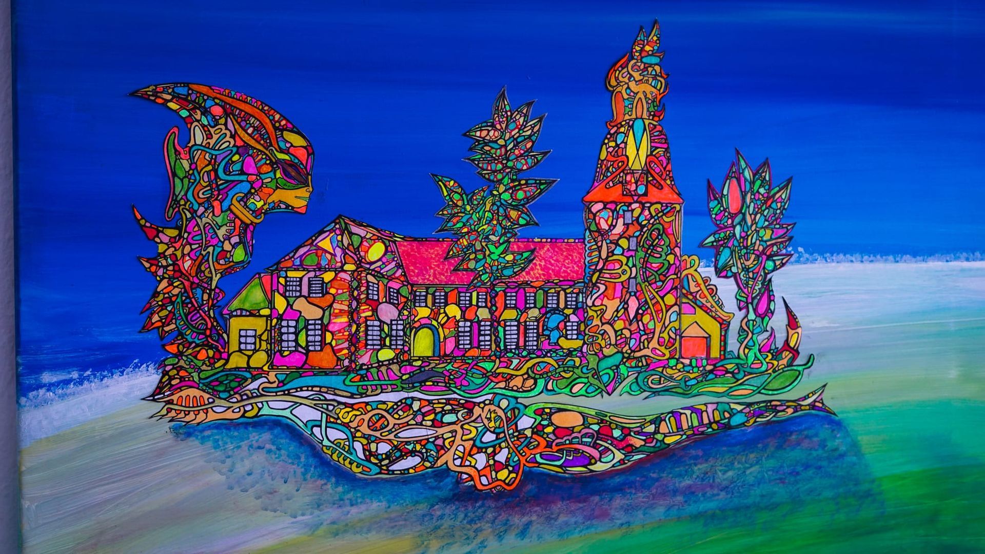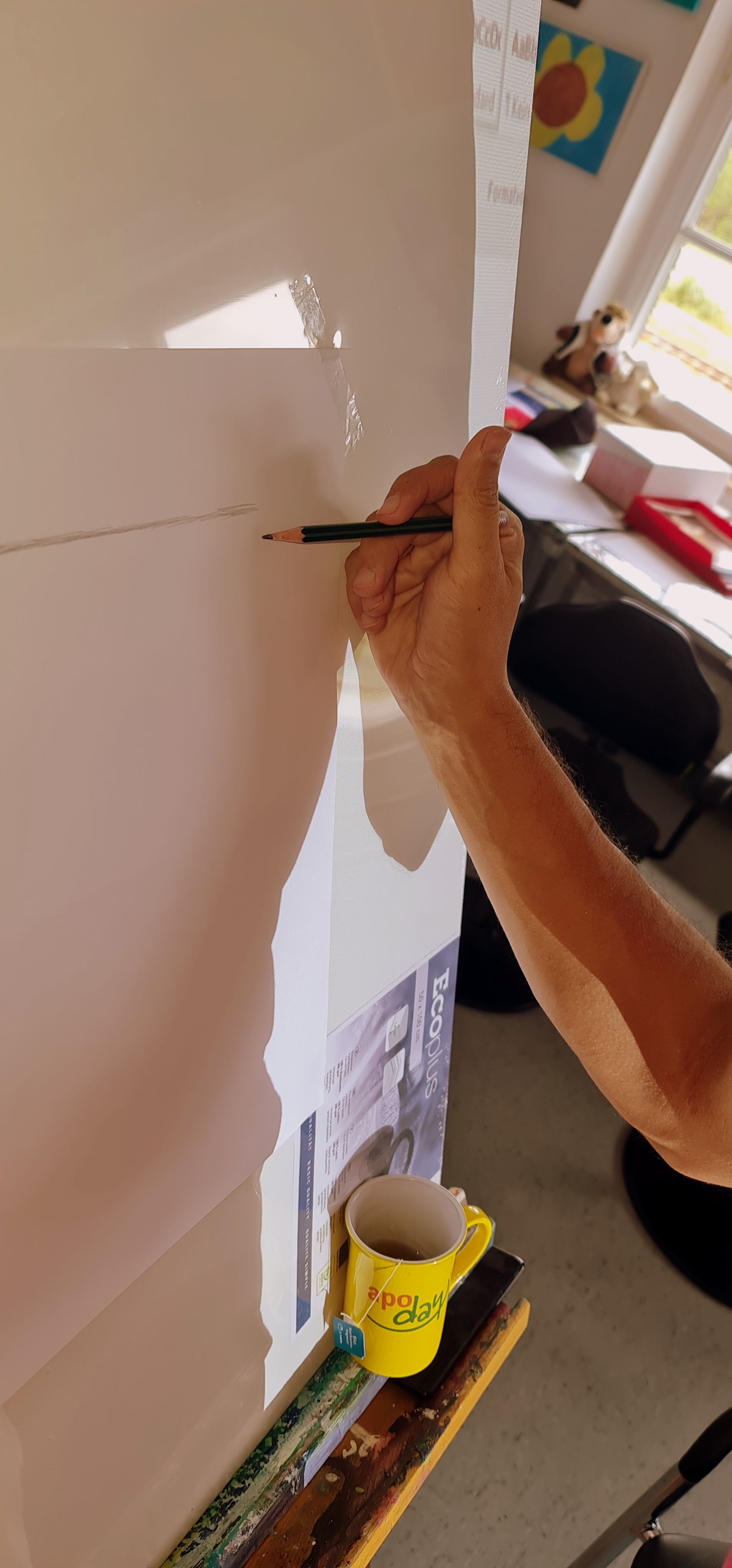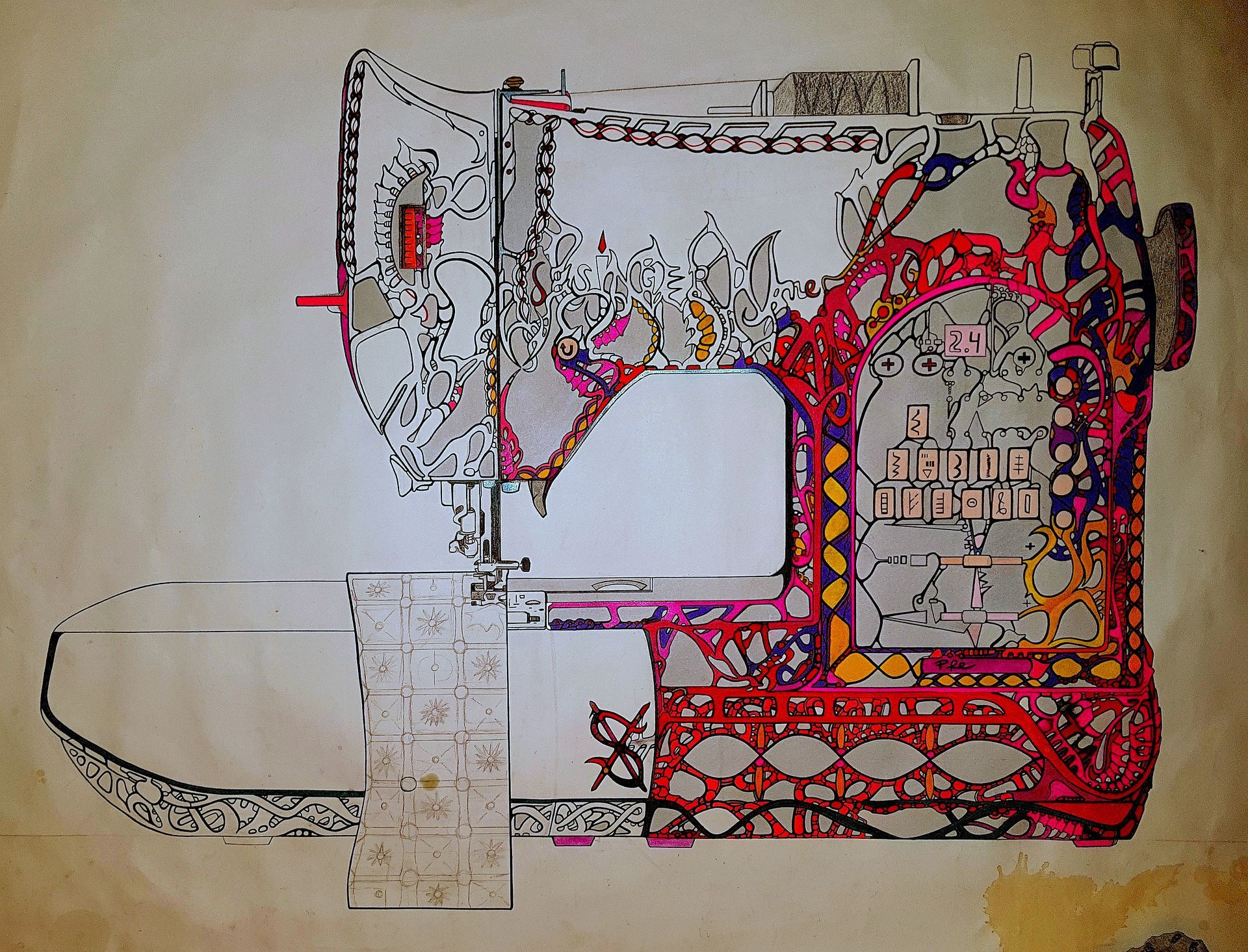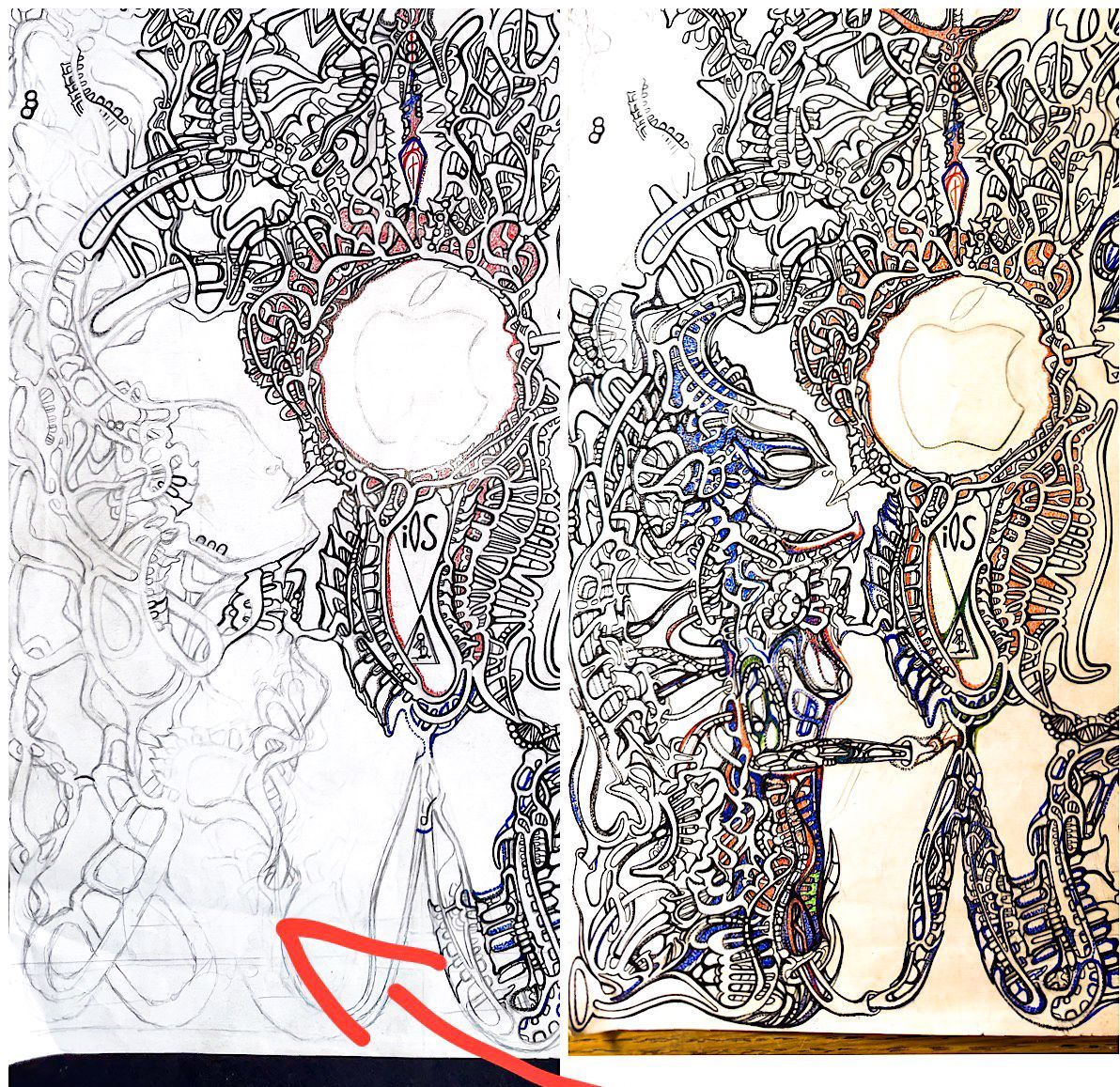 Dieses Bild ist ein spezieller Auftrag gewesen, es ging darum, die Real existierenden Beine samt den Schuhen des Models in meinem Stil wiederzugeben. Das ist für die Auftraggeberin am wichtigsten gewesen. Was meine Muster den Stil, alles, was man sieht, betrifft, so kann ich diesbezüglich das eine sagen, das es intuitiv kommt. Die verschiedenartigen Muster, das Sylische, kommt einfach. Es ergibt sich im Laufe der Arbeit. Wobei mir persönlich bei dem Projekt wichtig war, das man einen Zusammenhang erkennt.
